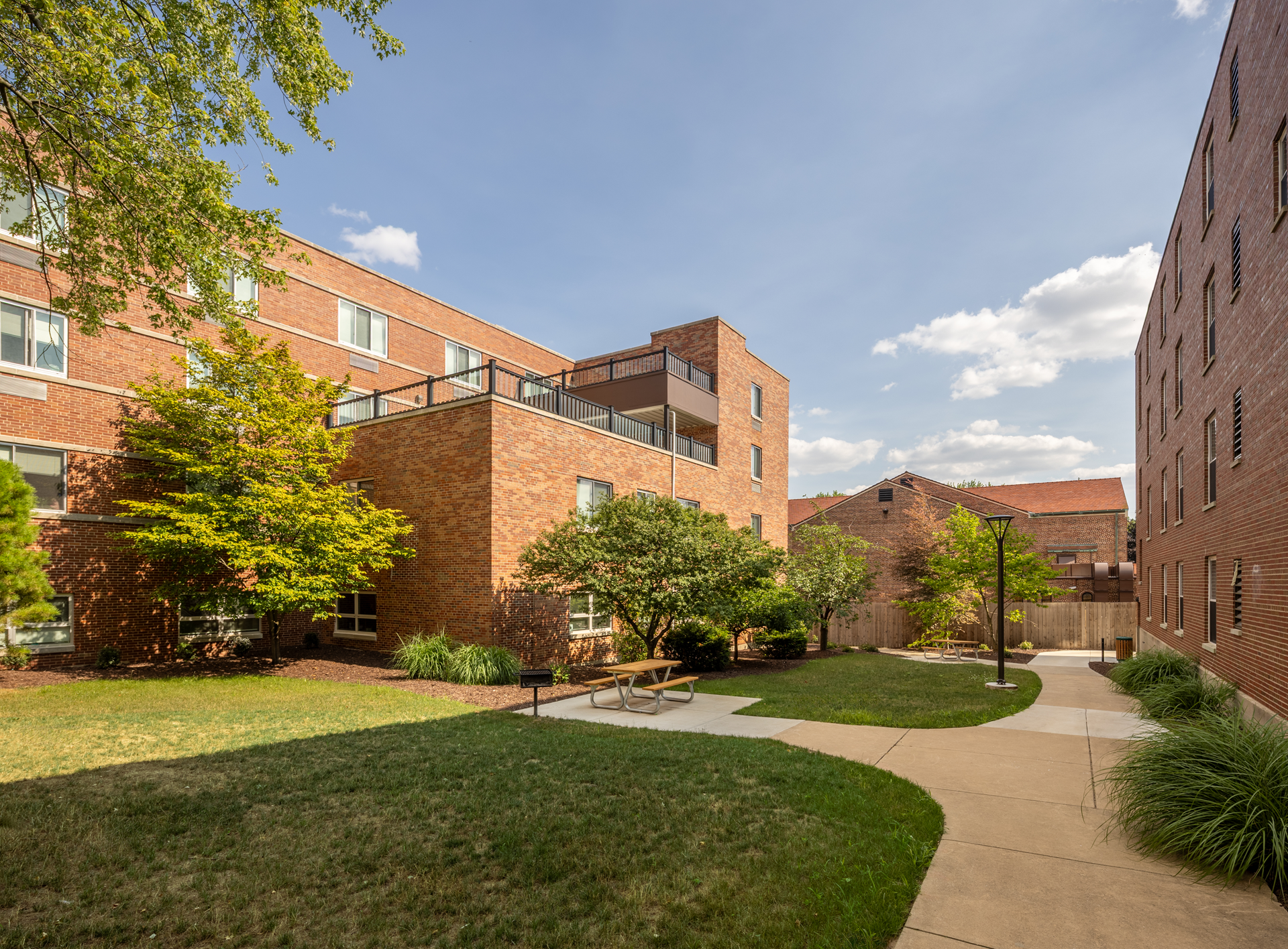 walks and durable outdoor furniture that support year-round use. One of the most