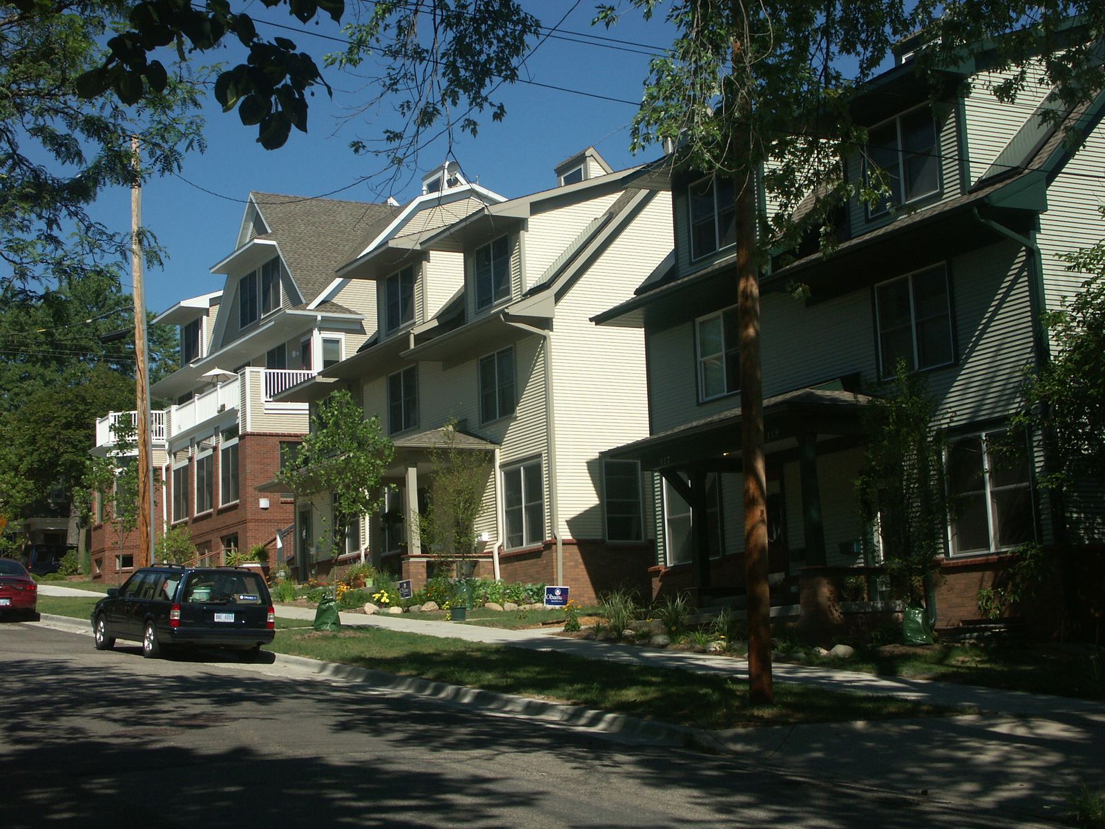 The development comprises seven buildings containing a total of 20 residential units, along with a garage and carport structure. Building heights vary from one-and-a-half to two-and-a-half stories, creating an approachable, neighborhood-scaled character throughout the site. Units range from two to three bedrooms, with the added flexibility of finishing basement levels to accommodate additional living space as residents’ needs evolve.